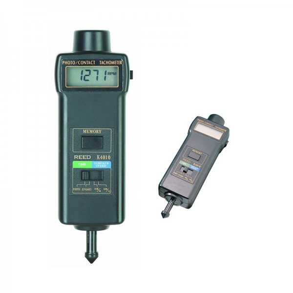 Reed K4010 Hand Held Tachometer with combined Photo Tachometer (RPM) & Contact Tachometer (RPM,m/min., ft/min.), offers wide measuring range from 0.5 to 100,000 RPM. Reed K4010 also has a good resolution and accuracy for performing visual diagnostic inspection and RPM measurements.