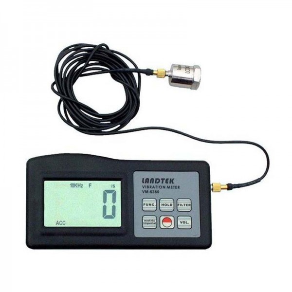 This Vibration Meter VM-6360 is a useful tool in machinery vibration monitoring. It measures acceleration (peak), displacement (peak to peak) velocity and revolution ( RPM) with high accuracy. The digital displayed vibration level is one of the best indications of machine running condition.