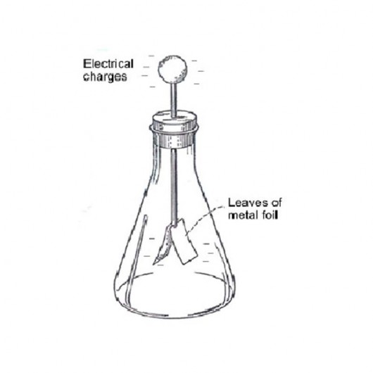 An electroscope is a simple device consisting of a metal ball that is attached by a conductor to two thin leaves of metal foil protected from air disturbances in a jar, as shown.When the ball is touched by a charged body, the leaves that normally hang straight down spread apart.