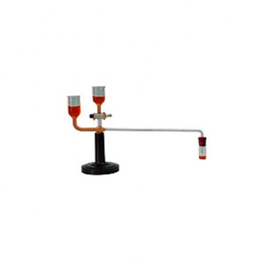 For demonstration of transpiration rates and rate of absorption of water by a cut shoot or small plant.Consists of graduated horizontal glass tube bent down at one to two reservoirs. The near reservoir with stopcock to control flow of water and the reservoirs fitted with a bored rubber stopper to take cut – shoot.Apparatus mounted on a wooden base (By spring clips). Horizontal capillary tube graduated in mms.