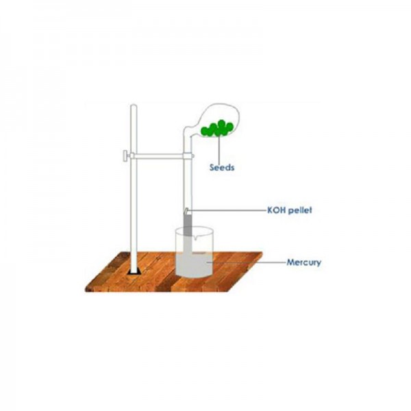 Few germinating seeds are taken in the bulb of the respirometer. The tube is inserted into a beaker containing mercury. A pellet of KOH is introduced into the set-up.