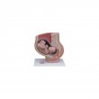 This median section model shows the female pelvis during the 40th week of pregnancy with a removable fetus. Demonstrate normal position of child before birth, female genital organs, human reproductive and urinary systems. A uterus with embryo in 3rd month of pregnancy is mounted on base for study.