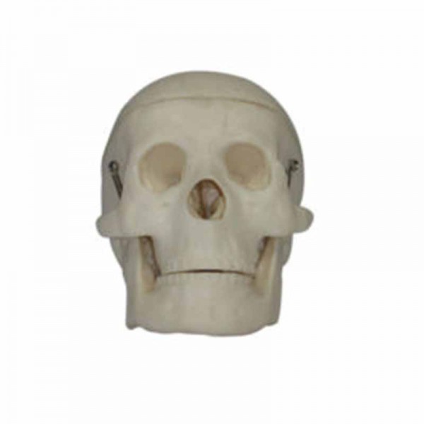 This life-size adult skull features a movable jaw, cut calvarium, suture lines and 3 removable lower teeth – ncisor, cuspid and molar. Dissected into 3 parts. Size: 19x15x21cm.