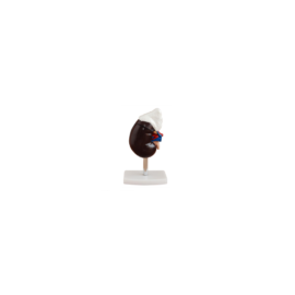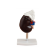 The coronary section of the right kidney shows the renal hilus, renal blood vessels, ureter, renal pelvis of the kidney, the renal substance is demonstrated by its medulla and cortex, medullary pyramid, papillae etc. 2 times enlarged. Size:20x10x4CM. On stand.