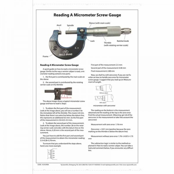 The zero error of a micrometer screw gauge occurs when the flat end of the screw touches the stud or anvil, and the gauge reads other than zero. If there is an error, it results in a positive or negative calculation. well-calibrated micrometers that are in good condition measure close to zero; and, they do not introduce a noticeable error.