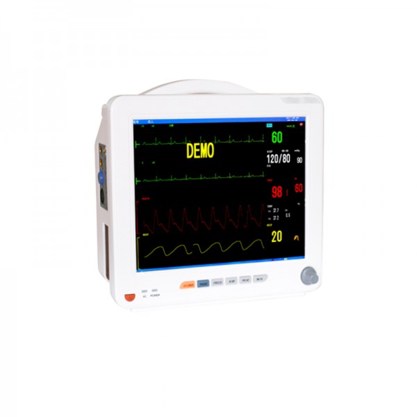 Features & Benefits: ·6 Standard parameters: ECG, RESP, NIBP, SPO2, 2-TEMP, PR/HR. ·12.1"high resolution color TFT LCD display. ·Real time S-T segment analysis, pace-maker detection. ·Indication of Incorrect manipulation and malfunction