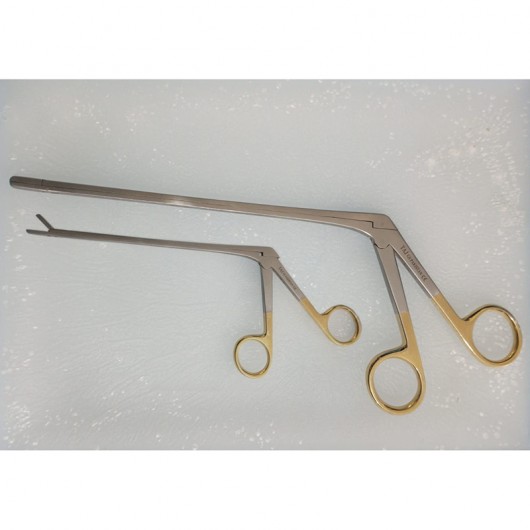 Disc Forceps / Rongeur is a surgical instrument used to manipulate and handle intervertebral discs in spinal procedures & other neurosurgical and orthopaedic surgeries involving IVD manipulation. These rongeur features ring handles and serrated jaws with a cup that aids in their ability to effectively grip the IVD. It is available in straight, up-angled & down-angled jaws.