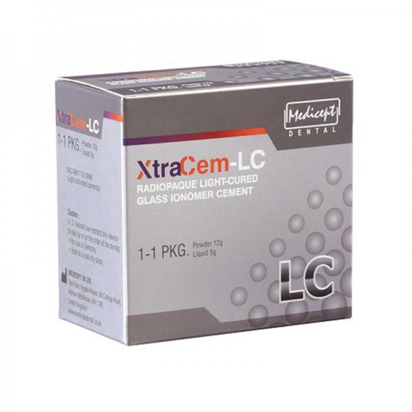 Xtracem-LC is a Radiopaque glass-ionomer light-cured lining and restorative material with high initial strength. The cement can be finished immediately after light curing, which considerably simplifies and accelerates treatment and minimizes moisture sensitivity of glassionomer cement in the initial setting phase. Chemical adhesion to hard dental tissues and long-term fluoride release are retained.